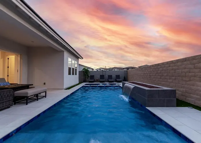 A Luxe 4Br Retreat With Pool, Hot Tub And Sunset Views Vila Liberty, localizada 4.4 km de Golf Club of Estrella, convida os hóspedes a relaxar com jacuzzi.